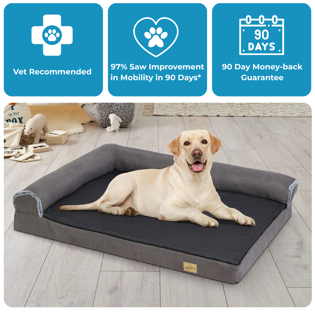 We back every OrthoPup-Sofa with a straightforward 90-day money-back guarantee. If you don't see a real difference in your dog's comfort or mobility, we'll refund every penny - no questions asked. If you're not seeing a real difference in your dog’s comfort or mobility, we’ll refund every penny.